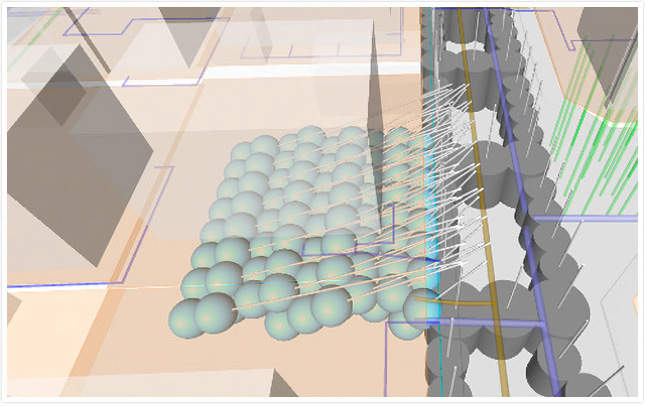 削孔ラインと埋設物の干渉チェックのイメージ(画像拡大)