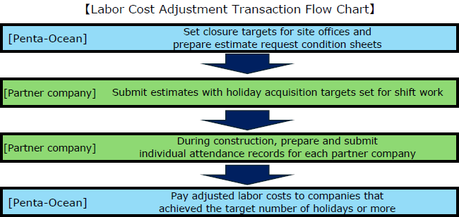 We have adopted a system in which, if skilled Workers of partner companies who have declared a target for holidays exceeding the site closure target in the estimate request conditions achieve the target number of holidays on an individual basis, the labor cost is increased and adjusted, and paid to the primary partner company.