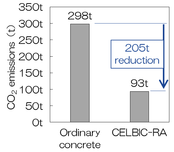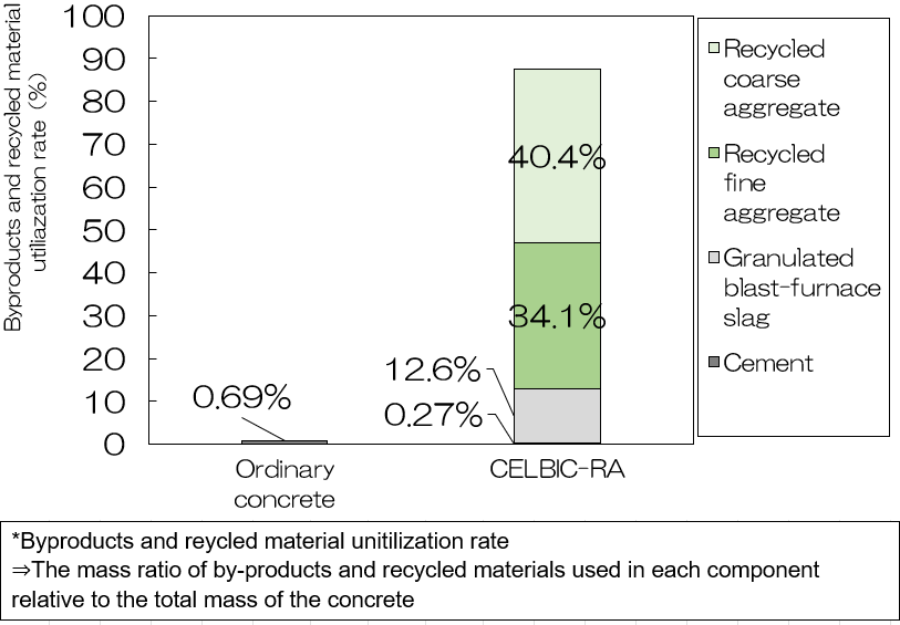*1 CELBIC-RA (Consideration for Environmental Load using Blast furnace slag In Concrete-Recycled Aggregate) *2 CELBIC: An environmentally conscious concrete that satisfies the performance standards required for building structural concrete while reducing CO2 emissions from concrete materials by approximately 9–63%.
