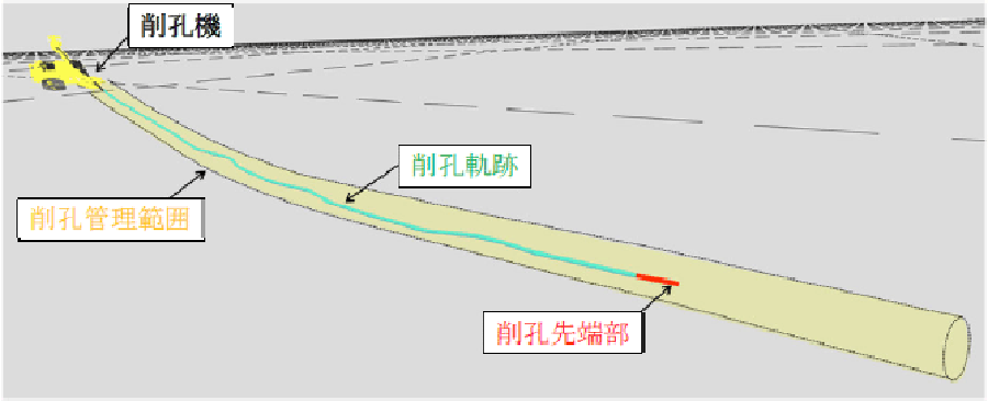 現地実証実験では、経験の浅いオペレータが実施工と同程度の32mの曲線削孔を実施し、効果を検証しました(図-3、写真-1)。ガイダンス無しでは、ズレの許容限界ラインに接近しましたが、ガイダンスを適用することで、最大ズレ量を約55%低減し、高い精度での削孔を実現しました(図-4)。また、最適な操作量をリアルタイムに提示することで、オペレータの判断時間を短縮し、削孔作業の時間も約20%削減されました。さらに、五洋建設が開発した三次元可視化ツール「Gi-CIM」との連携で、遠隔からでも削孔の進捗状況をリアルタイムで確認可能となり、出来形確認の利便性が大幅に向上しました(図-5)。