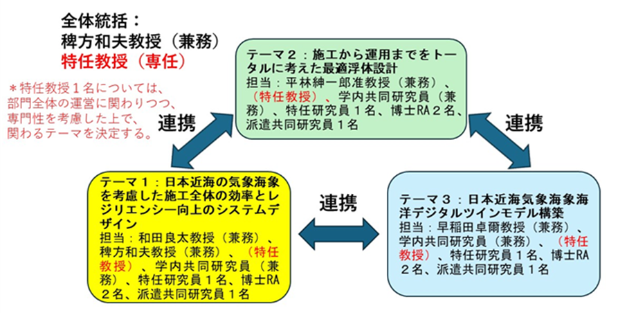 浮体式洋上風力の施工・運用イノベーション社会連携研究部門の体制(案)